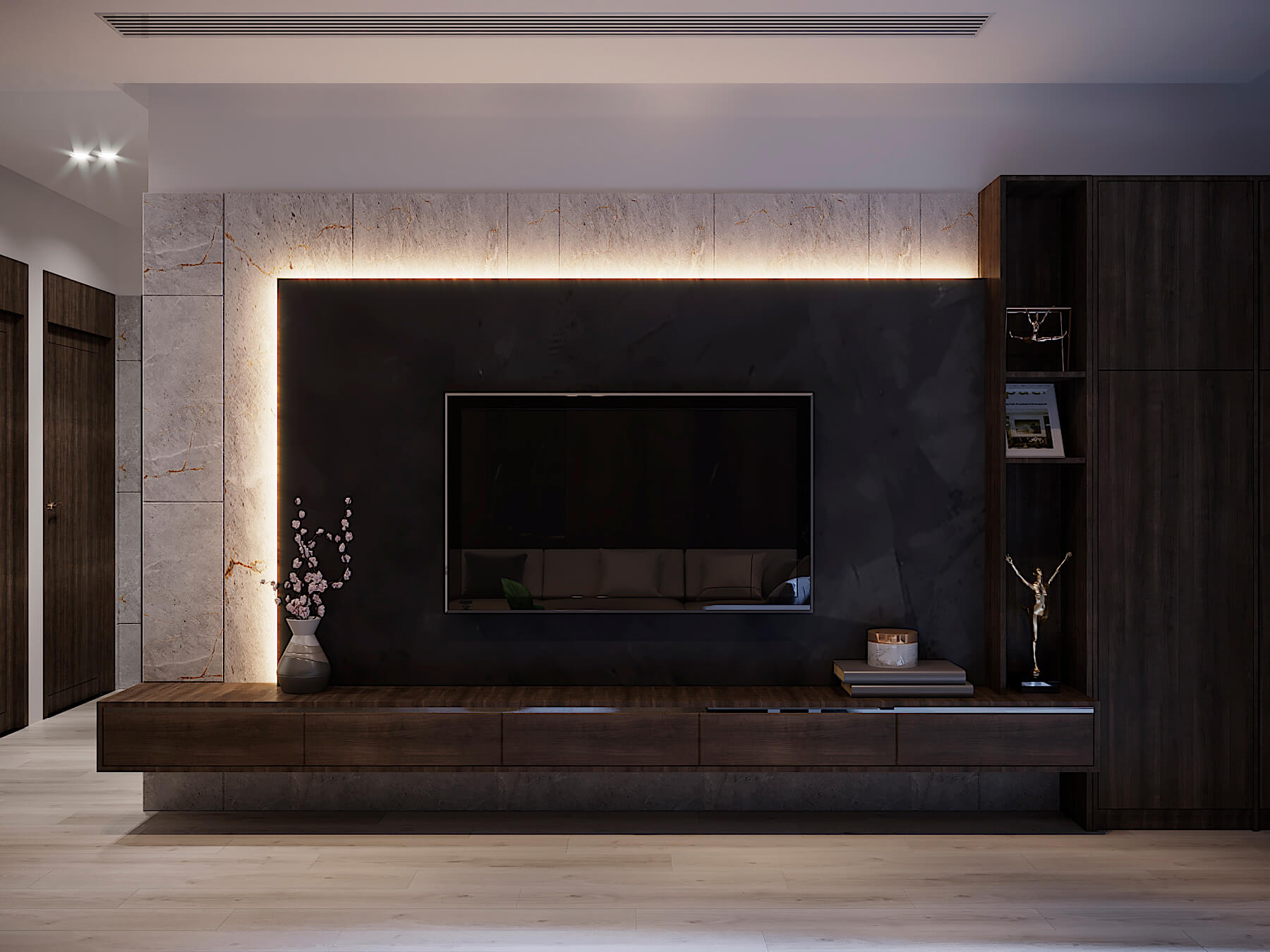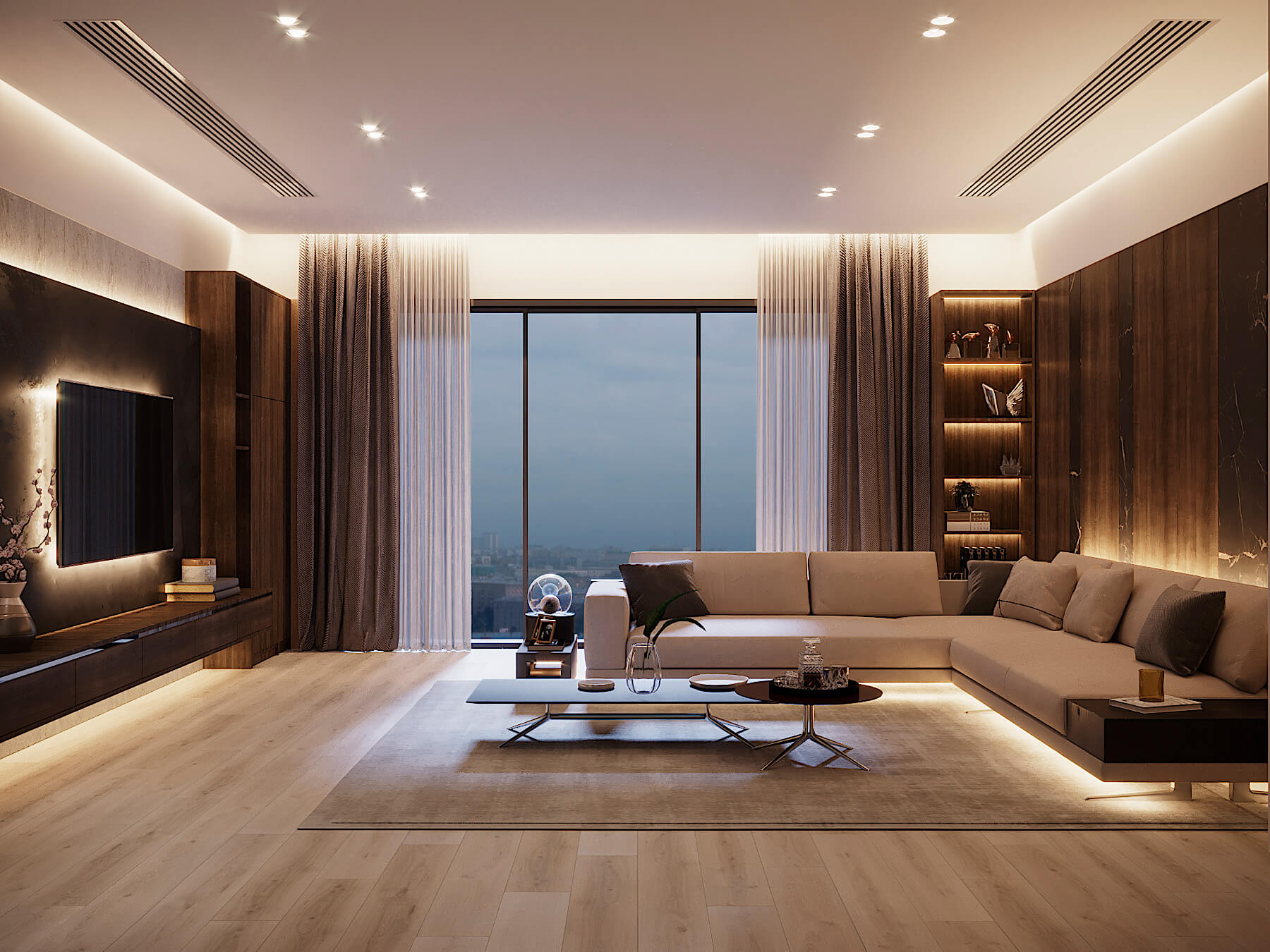 Lichtpaket Wohnzimmer | Fernseher – Sideboard – Regale – Couch – TV-Wand